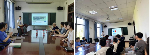 近年來,在光晶格中調(diào)控拓?fù)淠軒〉弥匾M(jìn)展,使得在光晶格系統(tǒng)中有望實現(xiàn)分?jǐn)?shù)陳絕緣態(tài)。王波濤博士介紹了一個可在實驗上實現(xiàn)的光晶格體系,詳細(xì)探討了分?jǐn)?shù)陳絕緣態(tài)的穩(wěn)定條件和探測分?jǐn)?shù)激發(fā)的條件。還介紹了通過調(diào)控系統(tǒng)和環(huán)境的構(gòu)型,可以在光學(xué)平底勢阱(optical box trap)中制備和操控拓?fù)鋺B(tài)。該方法為研究超冷量子物質(zhì)(包括強(qiáng)相關(guān)和拓?fù)湎啵┨峁┝艘粭l新途徑。物理學(xué)院教師和研究生與王波濤博士就感興趣的學(xué)術(shù)問題進(jìn)行了充分討論,本次報告會圓滿完成。