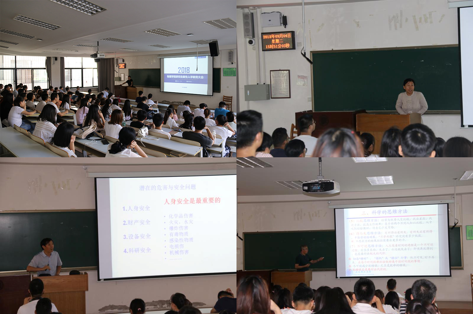 首先是王奇老師做報告,讓同學(xué)們了解學(xué)院沿革與科研實力、研工組織架構(gòu)、研究生的規(guī)章制度、獎懲措施等;然后吳愛丹老師介紹了關(guān)于研究生培養(yǎng)的事宜及問題;隨后張家良老師做了關(guān)于實驗室安全的報告,讓同學(xué)們更加了解實驗室安全、注重實驗室安全;最后叢書林老師以“研究生的思維、學(xué)習(xí)和科研方法”為題做了精彩的報告,給同學(xué)們上了新學(xué)期非常重要的第一課。