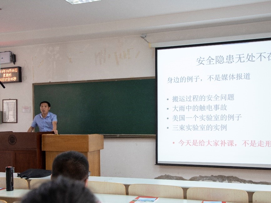 首先,張弛老師就學院沿革與科研實力、黨建優(yōu)良傳統(tǒng)、研究生工作管理模式、學院研究生就業(yè)前景與就業(yè)技巧等方面做了報告并對今后研究生的日常規(guī)范提出了要求;而后,叢書林教授以“研究生的思維、學習和科研方法”為題,結合多年教育經(jīng)歷,勉勵研究生新生深入鉆研科學問題,提高科研能力,最終取得優(yōu)異的科研成果;最后,張家良教授以一個又一個身邊的實例,要求全體研究生新生遵守實驗室守則,注重實驗室安全。
