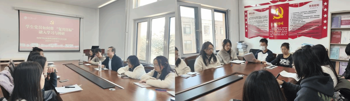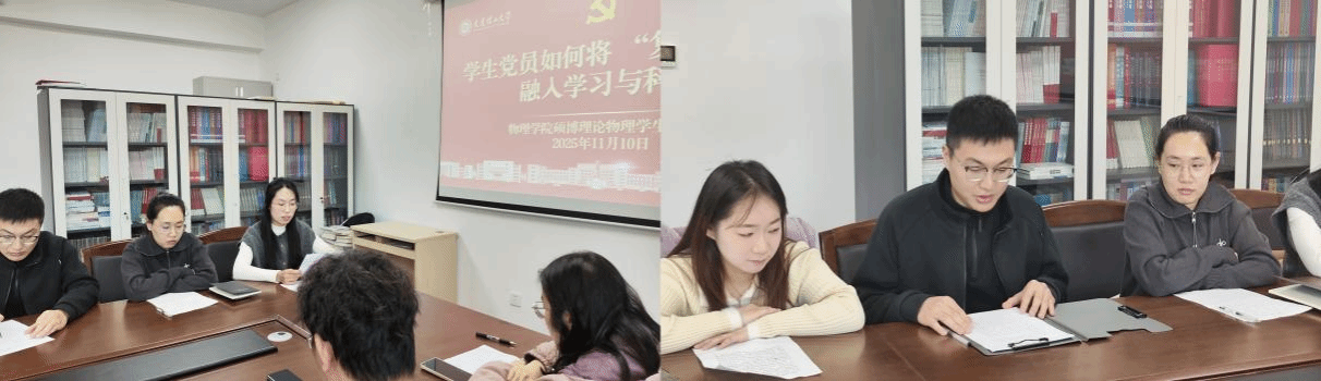 為深入貫徹上級(jí)黨組織關(guān)于黨員教育培訓(xùn)的重要部署,深化黨支部黨員集中培訓(xùn)的階段性成效,深刻領(lǐng)會(huì)謝春濤教授“中國(guó)共產(chǎn)黨與中華民族偉大復(fù)興”主題黨課的核心要義,2025年11月10日中午12:30,物理學(xué)院碩博理論物理學(xué)生黨支部在厚民樓(馬院)414會(huì)議室召開(kāi)全校第二次黨員基本培訓(xùn)主題研討會(huì),本次研討會(huì)的主題是“學(xué)生黨員如何將復(fù)興目標(biāo)融入學(xué)習(xí)與科研”。會(huì)議由黨支部宣傳委員聶文慧同志主持,特邀物理學(xué)院黨委書記于長(zhǎng)水教授蒞臨指導(dǎo),黨支部全體黨員參加會(huì)議。