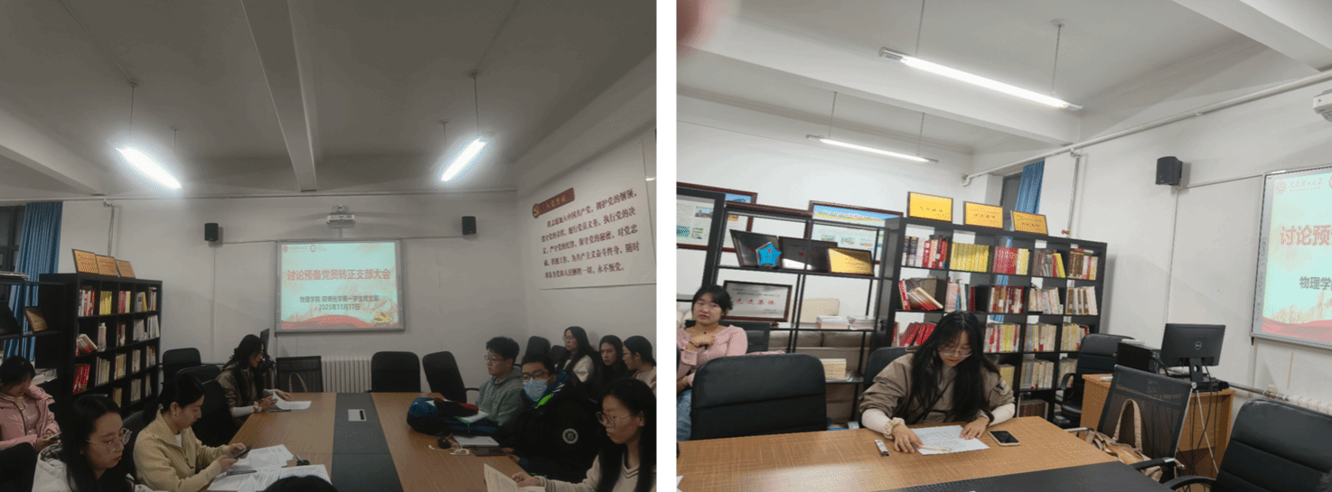 為進(jìn)一步優(yōu)化黨員隊(duì)伍結(jié)構(gòu)、補(bǔ)充先鋒力量,物理學(xué)院碩博光學(xué)第一學(xué)生黨支部于2025年11月17日晚上6:30在物理樓422會議室召開黨員大會。會議的主要內(nèi)容包括討論楊旭彤同志的轉(zhuǎn)正事宜和討論接收孟盧花、張慧寧、姜豐、林福鴻四位同志為中共預(yù)備黨員事宜。此次會議由黨支部書記呂拓同志主持。