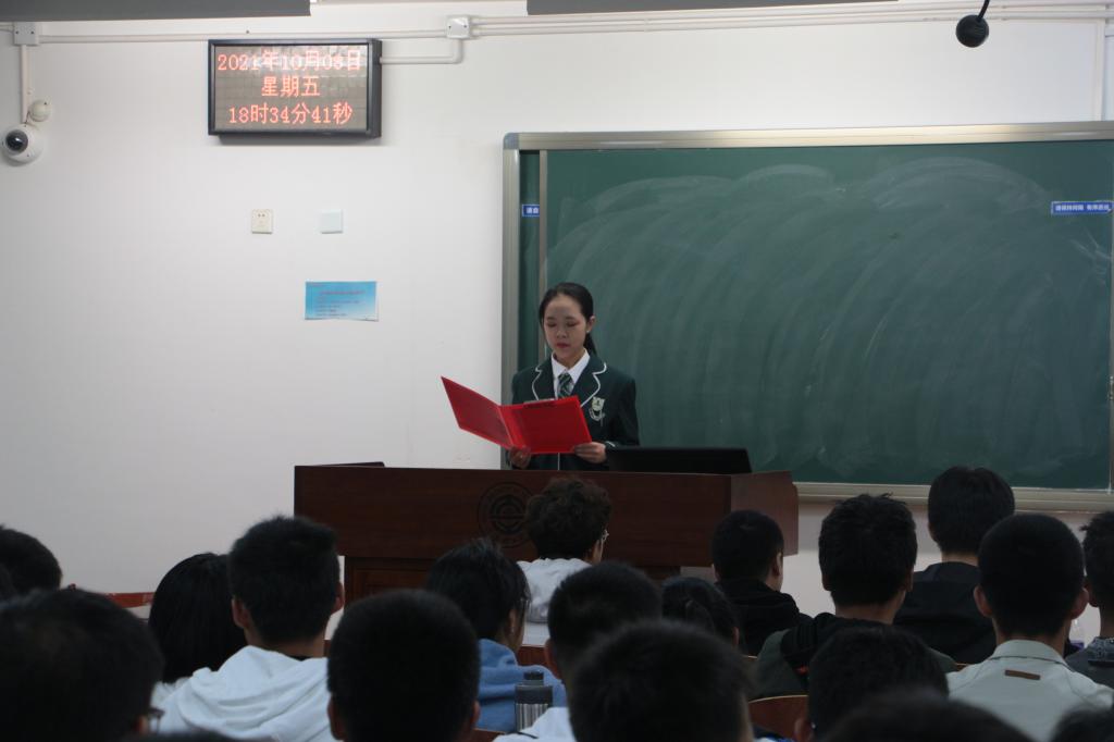 陳昱萌同學(xué)根據(jù)自己豐富的學(xué)生工作經(jīng)歷,向同學(xué)們介紹校團(tuán)委、班級學(xué)生工作的特點(diǎn),他勸誡同學(xué)們“在其位,謀其職”,擔(dān)任一項工作,就要認(rèn)真負(fù)責(zé)的完成。