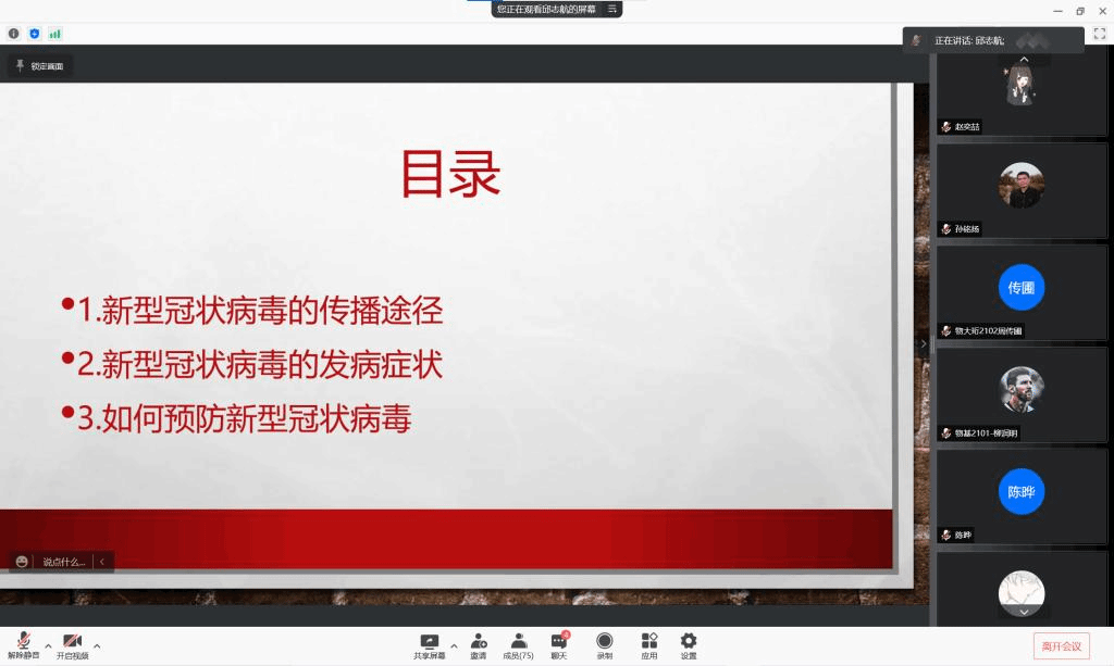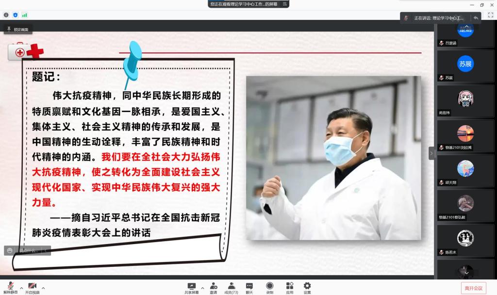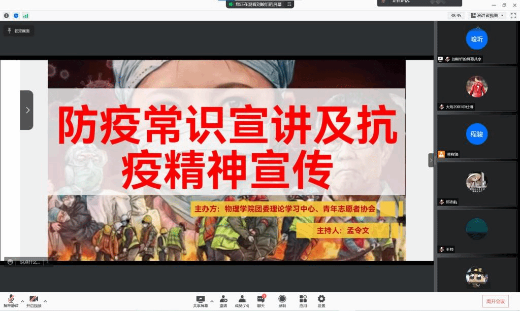 2021年11月12日晚6:30,物理學(xué)院防疫常識(shí)抗疫精神宣傳宣講會(huì)于線上順利召開(kāi)。