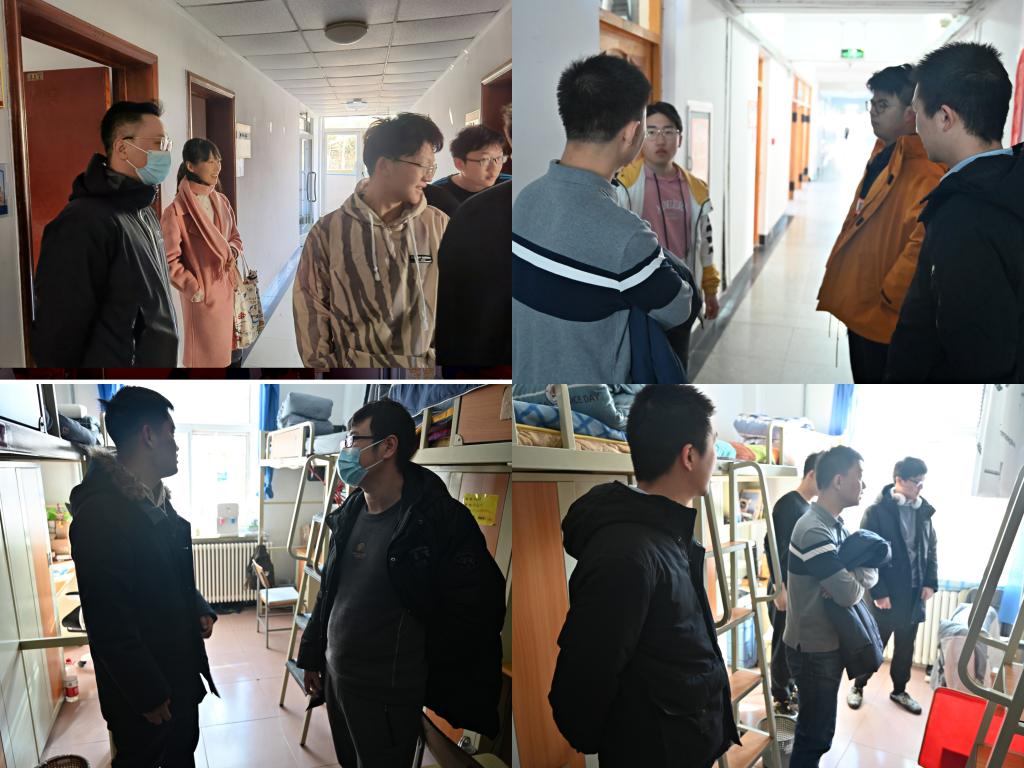 在檢查過程中,許劍老師一直叮囑學(xué)生,春季多發(fā)感冒,要勤通風(fēng);大連近些天降溫,要多保暖。在走訪宿舍時,還一直關(guān)心18級同學(xué)們的畢設(shè)情況。紀丹紅老師對部分20級同學(xué)們在大二上學(xué)期的學(xué)習(xí)狀況進行總結(jié),對幾位狀況不佳的同學(xué)給予新的期許,并希望其它同學(xué)繼續(xù)保持。
